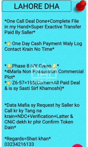 4 Marla Plot for sale in Sector Z-6 Commercial, Phase 8 Ivy Green, Lahore - (ID-3821)
