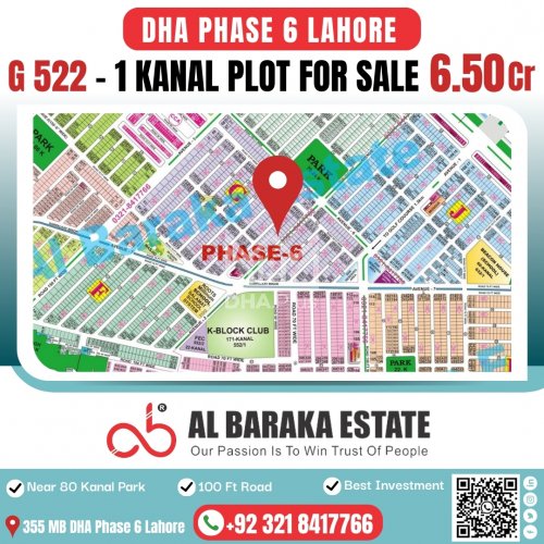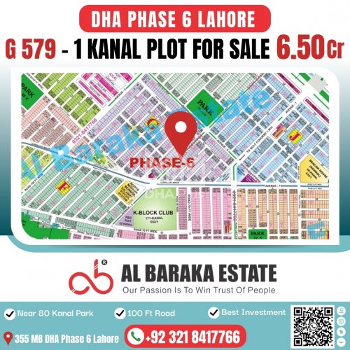 1 Kanal DHA PHASE 6 For Sale Prime Location Summary: Plot Number: 330 Location: Sector G, DHA Phase 6, Lahore Size: 1 Kanal Purpose: For Sale Category: Plot Price: On Call