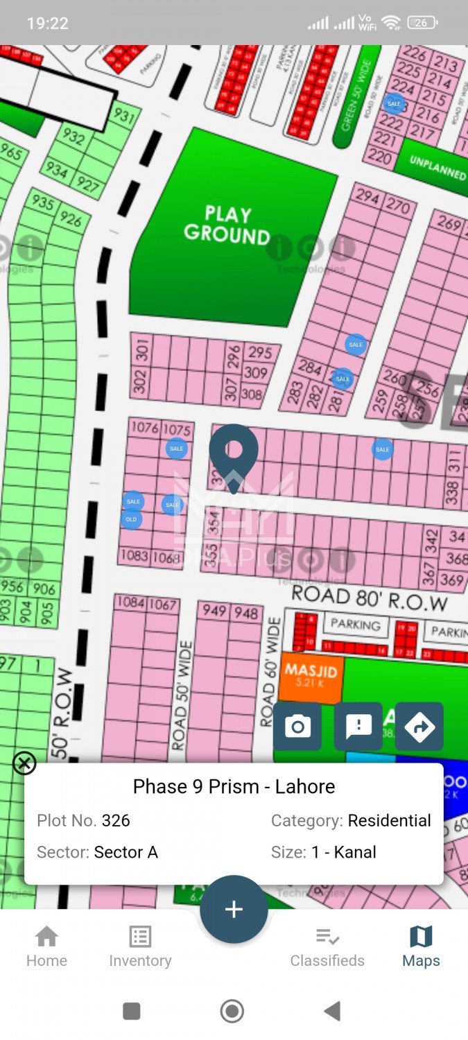 Phase 9 Prism A 326 @290 Lac Summary: Location: Sector A, Phase 9 Prism, Lahore Size: 1 Kanal Purpose: For Sale Category: Plot Price: PKR: 290 Lakh