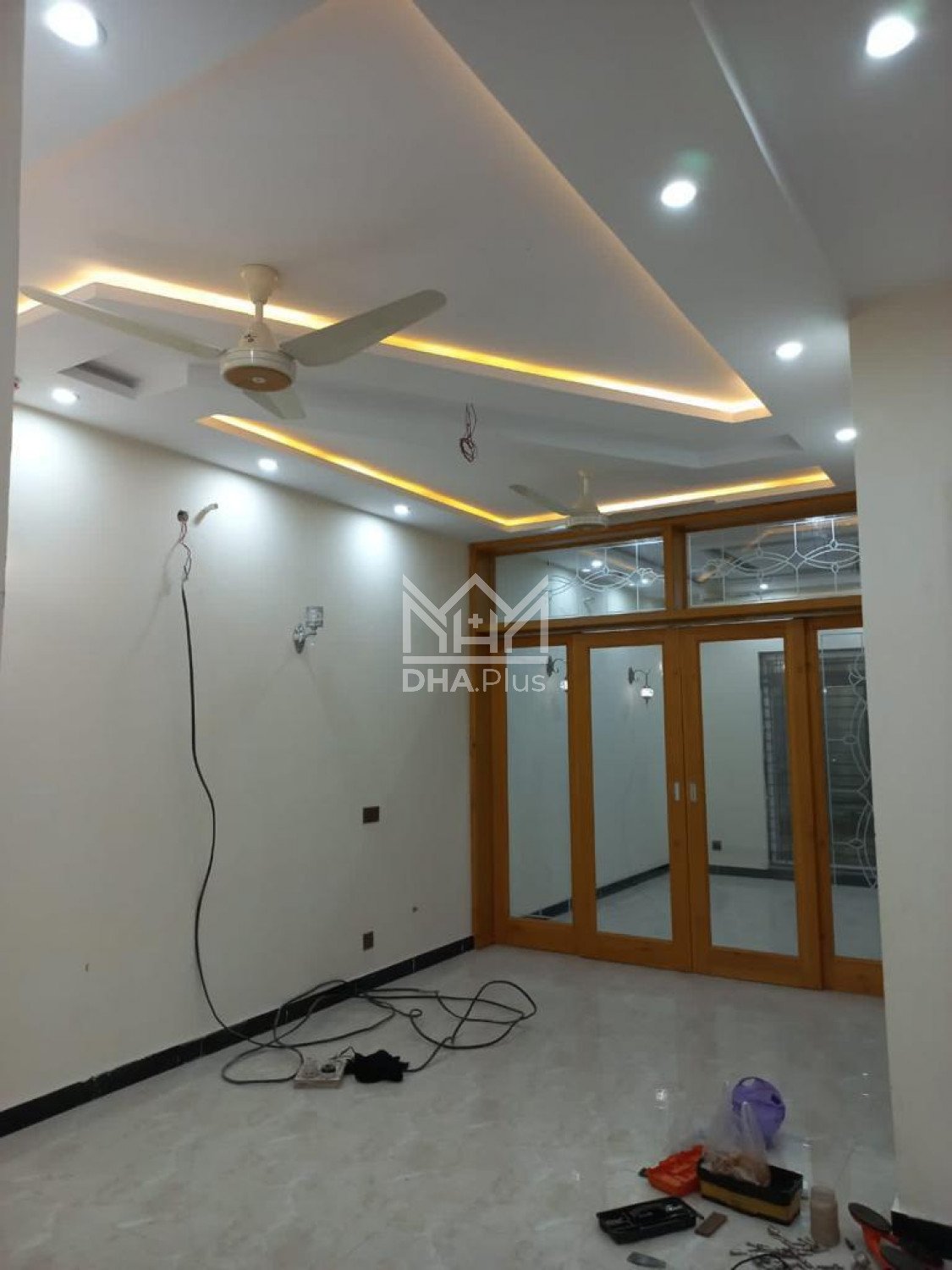 10marla full house rent in DHA phase 7 brand new 3bed with attached bathroom fully tailed flooring kitchen stor drowning dining servent huge parking lash green lown