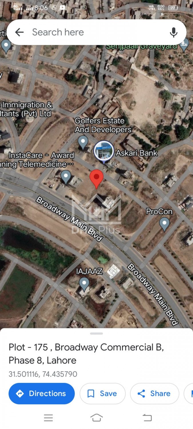 Phase 8 Broadway Commercial 16 Marla Plot 175+176. B Rs. 29 Crore Back Of Mian Road Summary: Location: Broadway Commercial B, Phase 8, Lahore Size: 16 Marla Purpose: For Sale Category: Plot Price: PKR: 2900 Cror