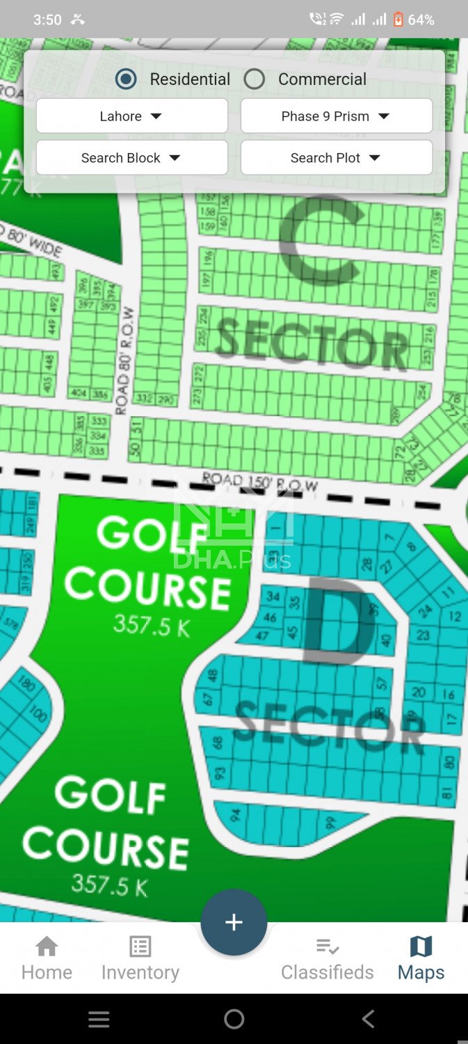 Two kanal plot for sale near golf ground Summary: Location: Sector D, Phase 9 Prism, Lahore Size: 2 Kanal Purpose: For Sale Category: Plot Price: On Call