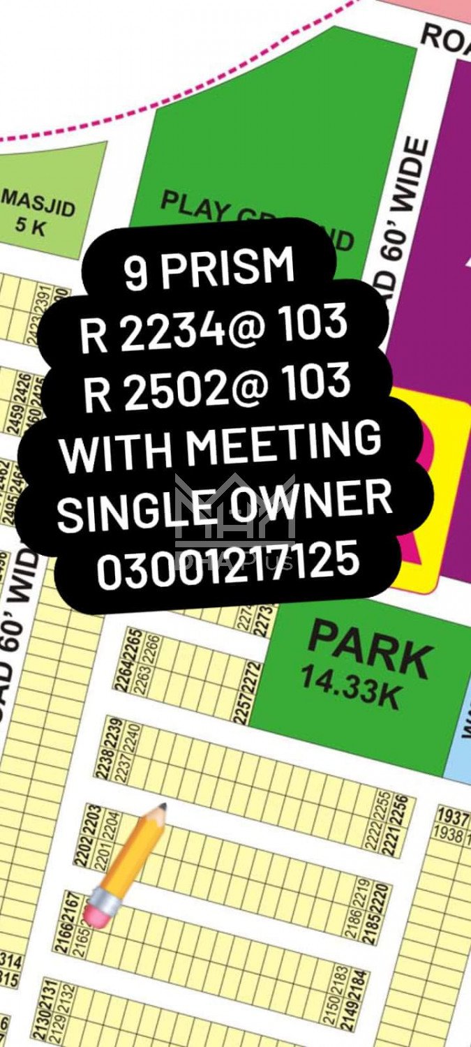 Phase 9 Prism R block Near Park Summary: Location: Sector R, Phase 9 Prism, Lahore Size: 5 Marla Purpose: For Sale Category: Plot Price: On Call