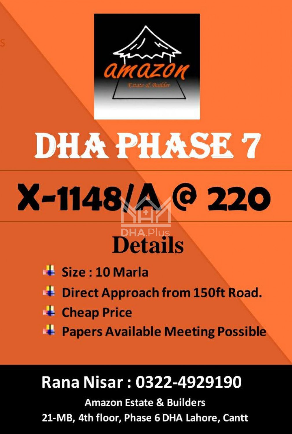 amazon offets 10marla plot in phase 7 block x @ 215 Summary: Location: Sector X, Phase 7, Lahore Size: 10 Marla Purpose: For Sale Category: Plot Price: On Call