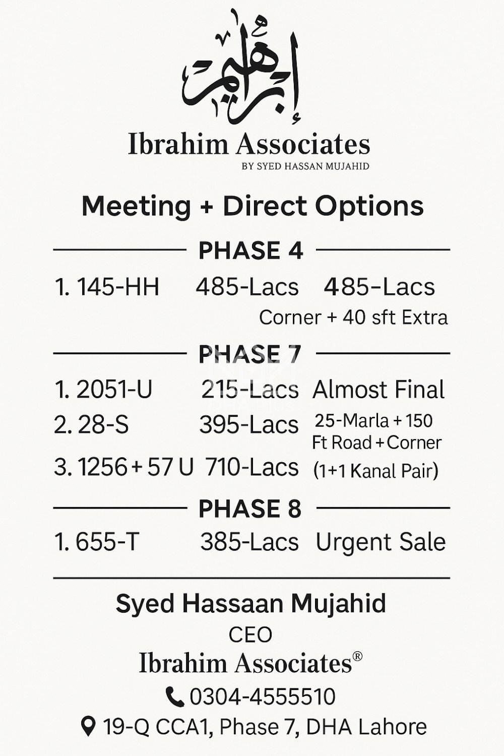 📍 19-Q CCA1, Phase 7, DHA Lahore