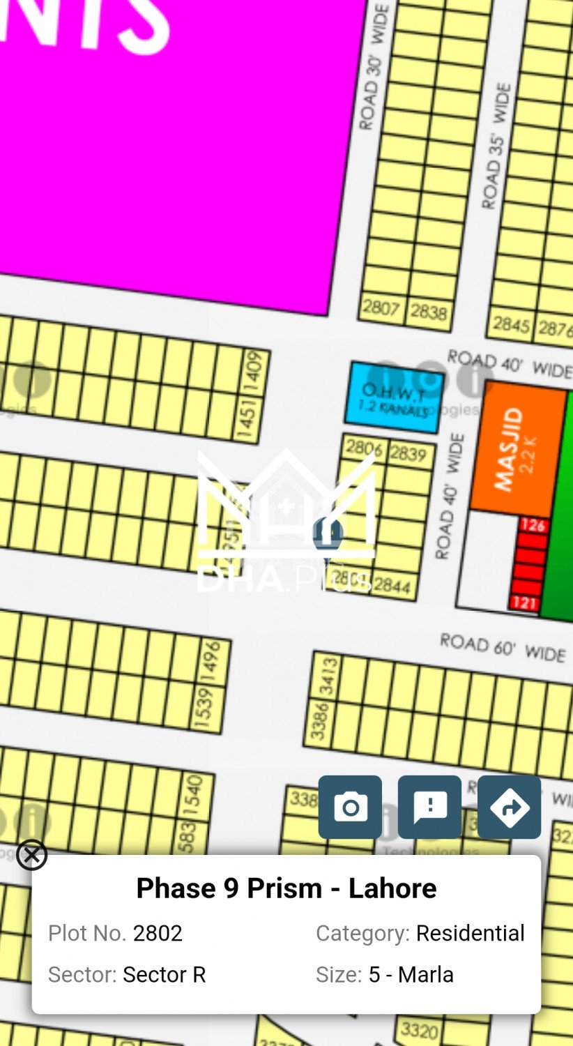 Dha 9 prism R 2802 60FT Road Summary: Location: Sector R, Phase 9 Prism, Lahore Size: 5 Marla Purpose: For Sale Category: Plot Price: PKR: 85 Lakh