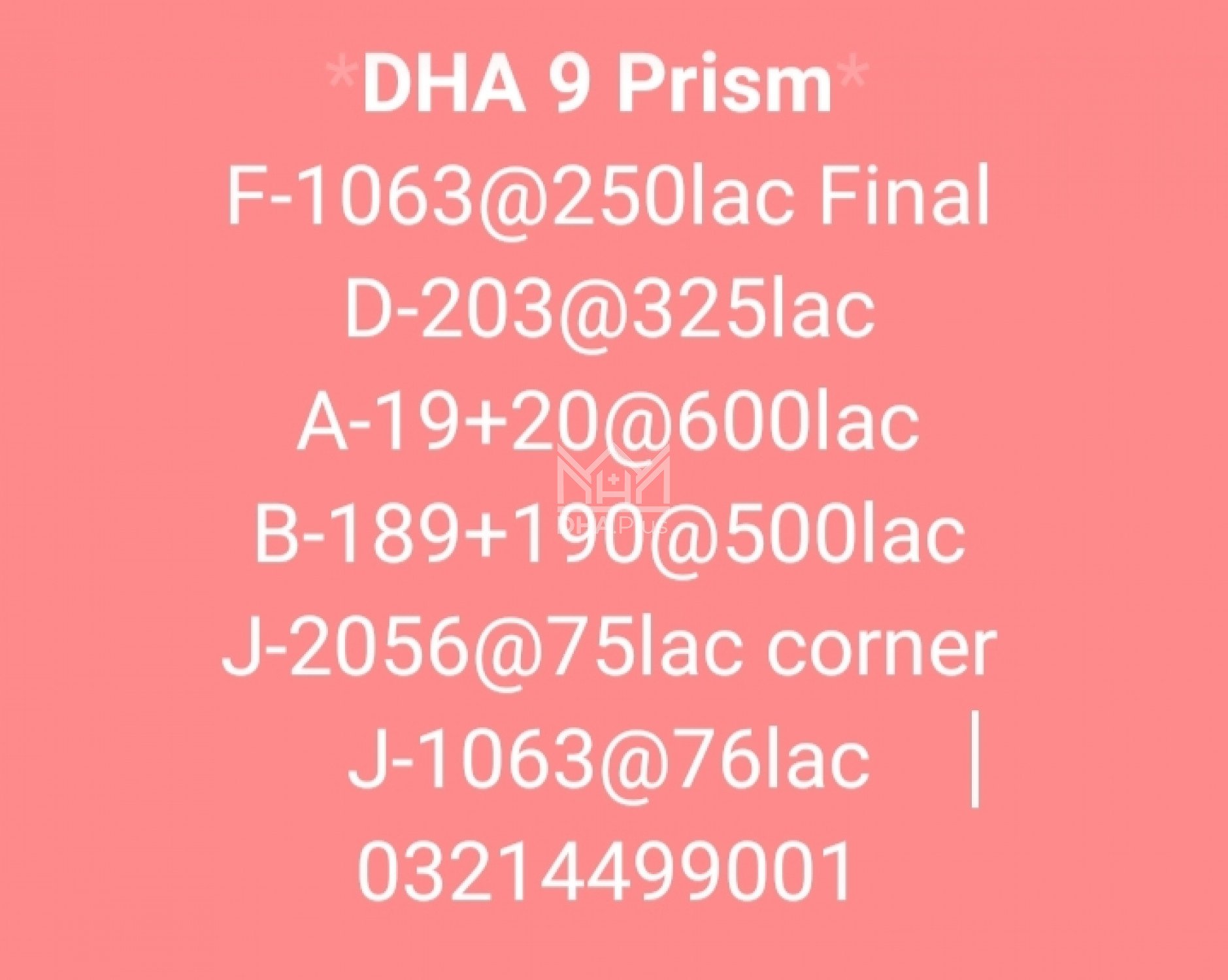 DHA 9 Prism F-1063@250lac Final Summary: Location: Sector F, Phase 9 Prism, Lahore Size: 1 Kanal Purpose: For Sale Category: Plot Price: PKR: 250 Lakh
