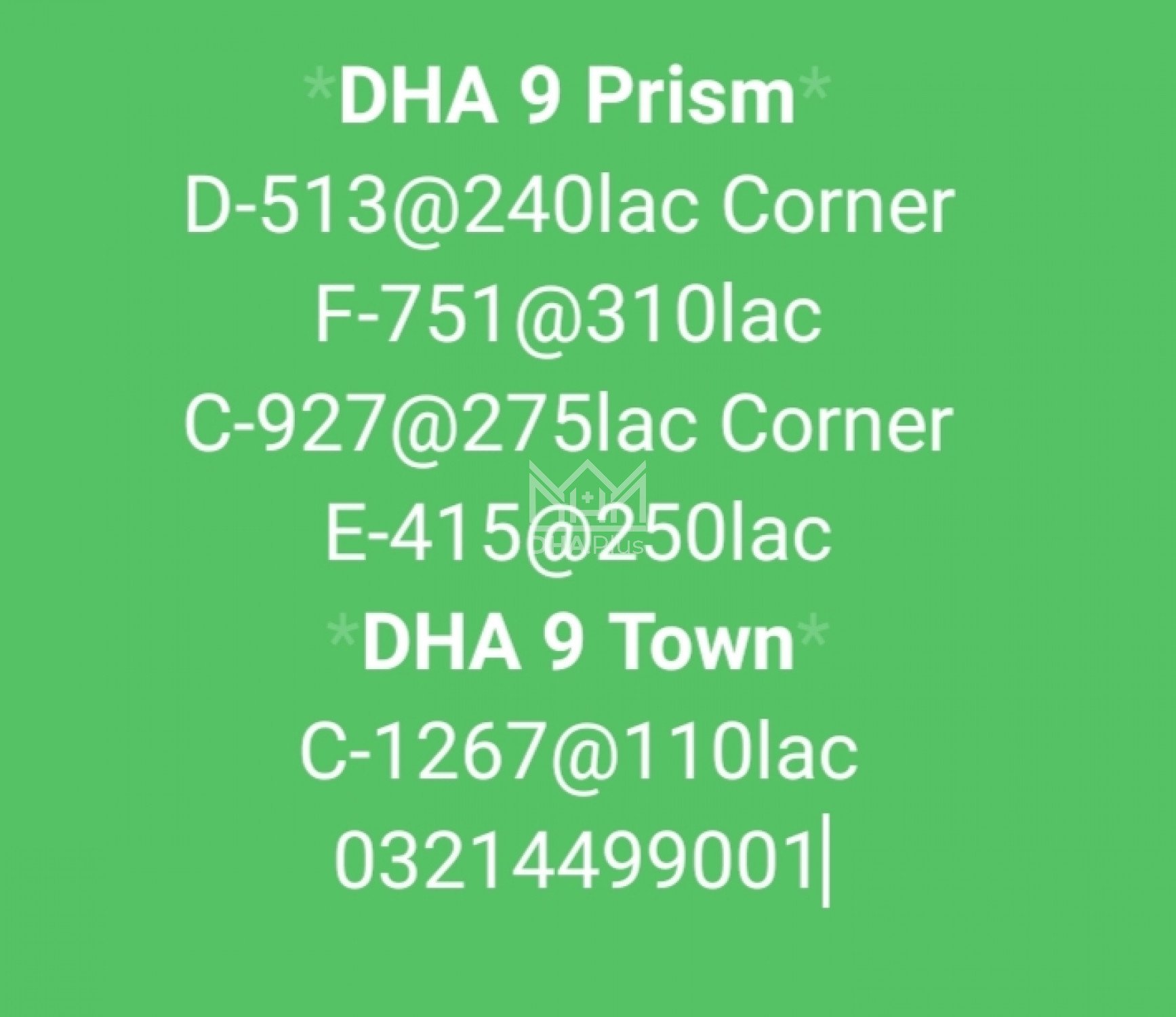 DHA 9 Town C-1267@110lac Summary: Location: Sector C, Phase 9 Town, Lahore Size: 5 Marla Purpose: For Sale Category: Plot Price: PKR: 110 Lakh