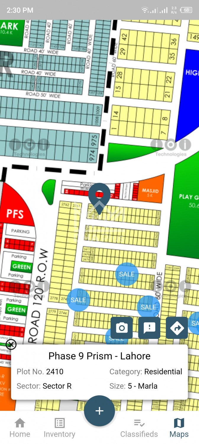 5Marla Plot available for sale very near to main park& main road. Summary: Location: Sector R, Phase 9 Prism, Lahore Size: 5 Marla Purpose: For Sale Category: Plot Price: PKR: 96 Lakh