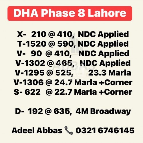 DHA Phase 7 1-Kanal Corner plot for Sale. Y-1359@375lacs Summary: Plot Number: 1359 Location: Sector Y, DHA Phase 7, Lahore Size: 1 Kanal Purpose: For Sale Category: Plot Price: On Call