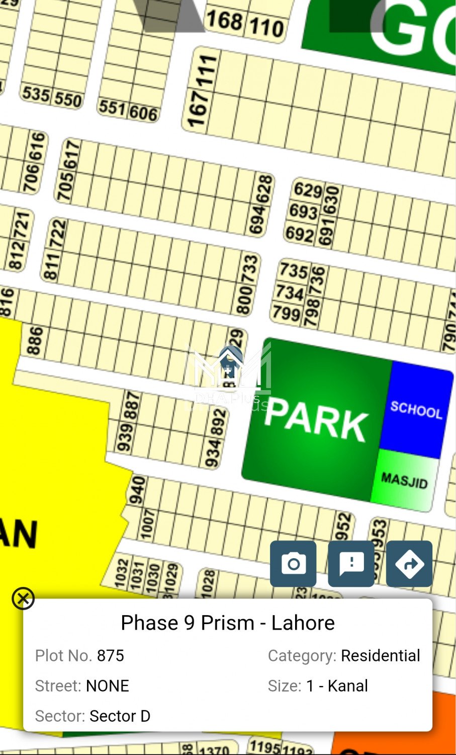 D-875 corner plus facing park Faizan Mughal Summary: Location: Sector D, Phase 9 Prism, Lahore Size: 1 Kanal Purpose: For Sale Category: Plot Price: PKR: 285 Lakh