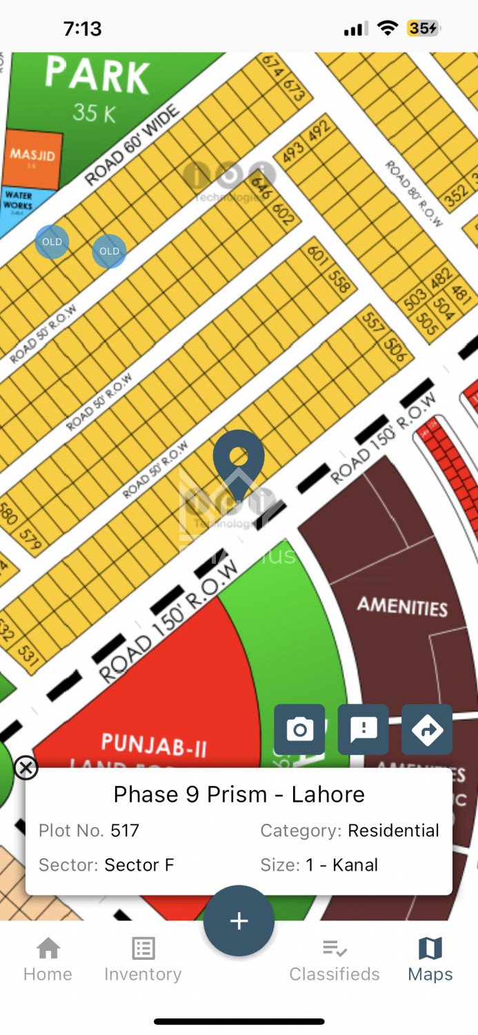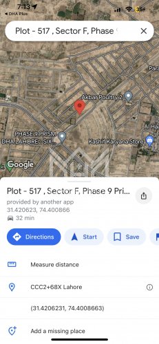 9 prism F 517@305 150 feet road good location Sigma star Summary: Location: Sector F, Phase 9 Prism, Lahore Size: 1 Kanal Purpose: For Sale Category: Plot Price: PKR: 305 Lakh