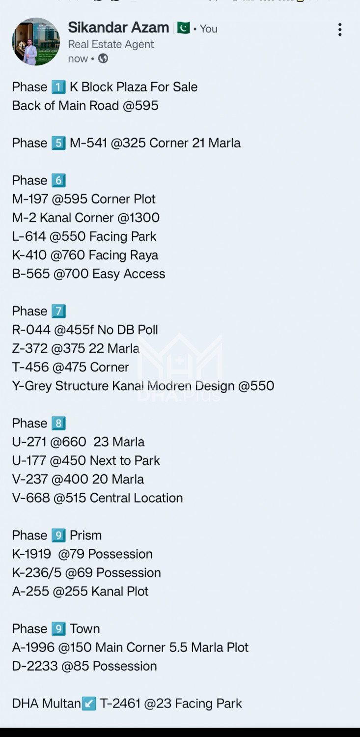 K Block Plaza For Sale Back of Main Road @595