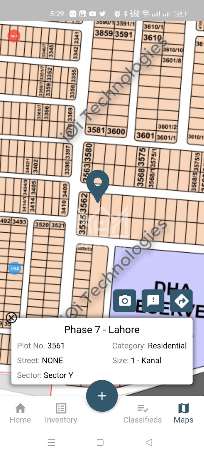 One kanal Plot 3561 Block Y next to Corner possession available Summary: Location: Sector Y, Phase 7, Lahore Size: 20 Marla Purpose: For Sale Category: Plot Price: PKR: 235 Lakh