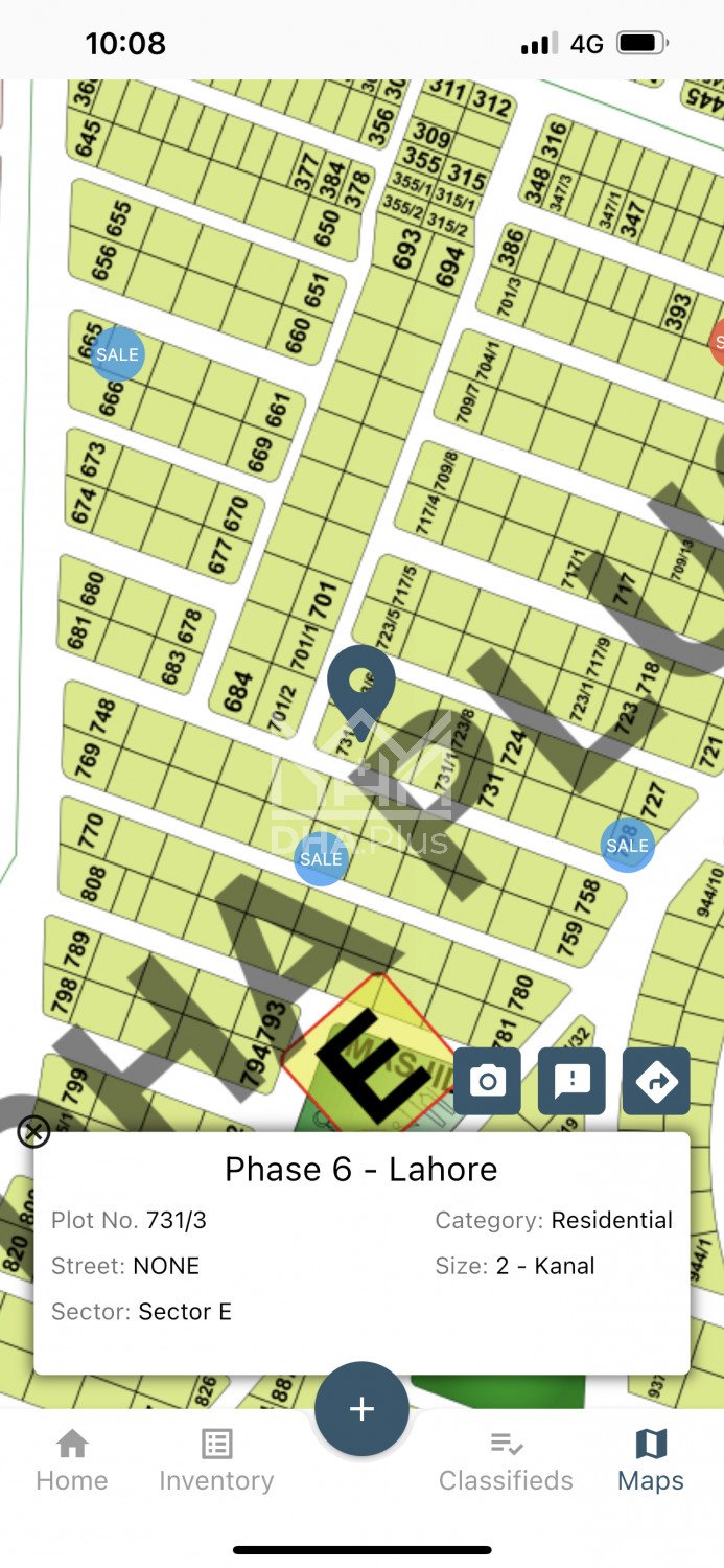 ph 6 E 731@1400 Summary: Location: Sector E, Phase 6, Lahore Size: 2 Kanal Purpose: For Sale Category: Plot Price: PKR: 1400 Cror