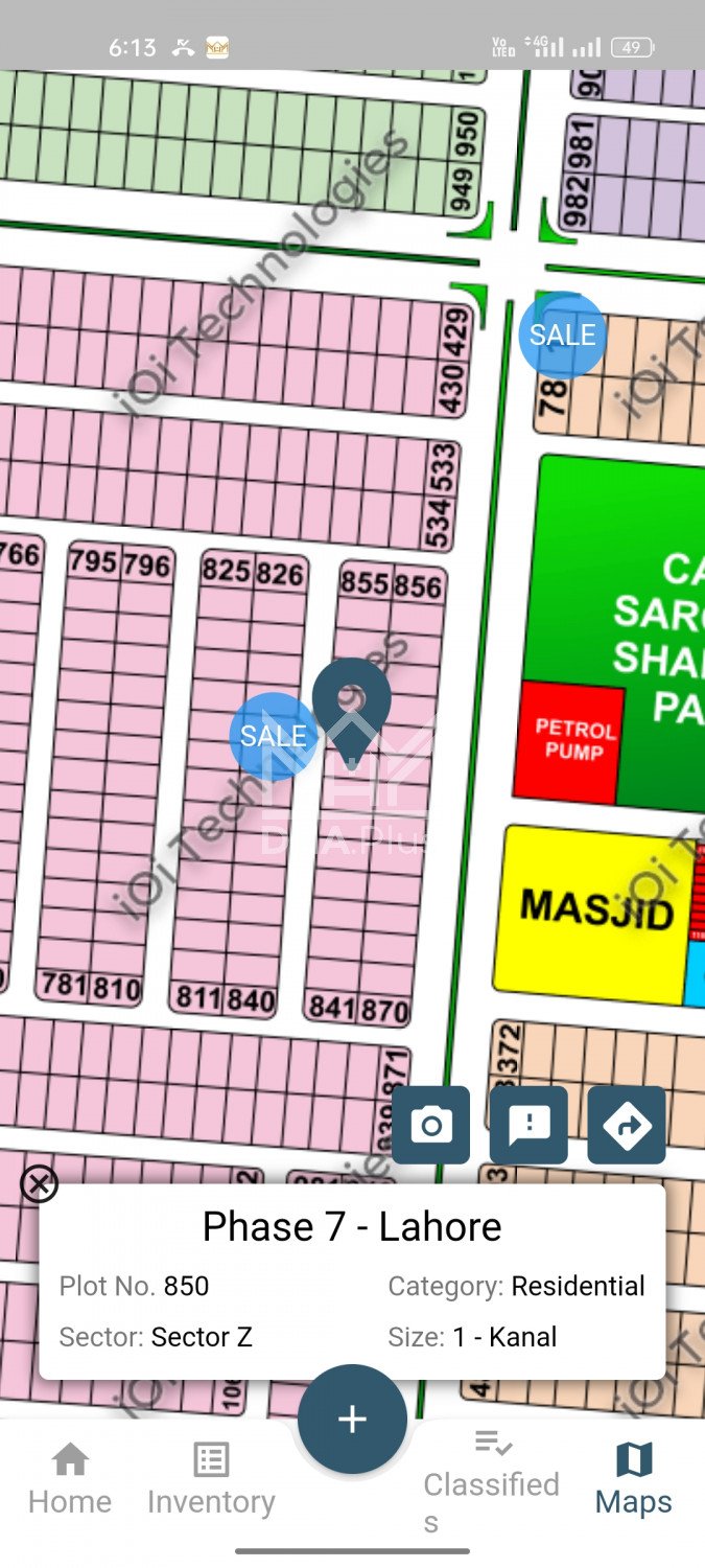 Good estate builder offers phase 7 Z 850 facing macdonald main ki back top location Summary: Location: Sector Z, Phase 7, Lahore Size: 1 Kanal Purpose: For Sale Category: Plot Price: PKR: 385 Lakh
