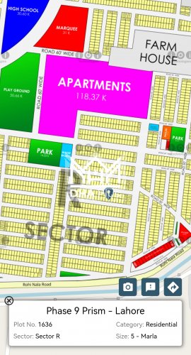 MAHAL EST PHASE 9 PRISM R-1636 5MARLA GOOD LOCATION Summary: Location: Sector R, Phase 9 Prism, Lahore Size: 5 Marla Purpose: For Sale Category: Plot Price: On Call
