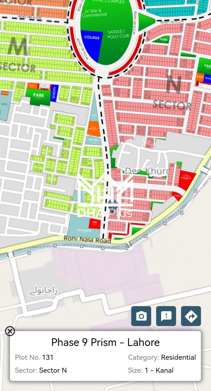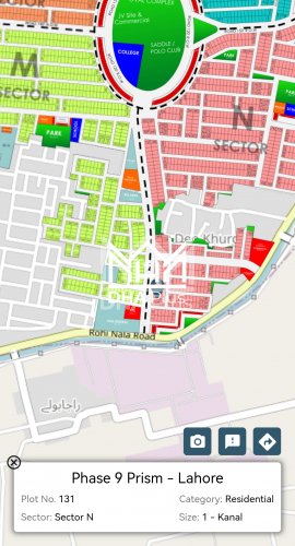 MAHAL EST PHASE 9 PRISM N-131. Main 150 road ANAM 03224542916 Summary: Location: Sector N, Phase 9 Prism, Lahore Size: 1 Kanal Purpose: For Sale Category: Plot Price: On Call