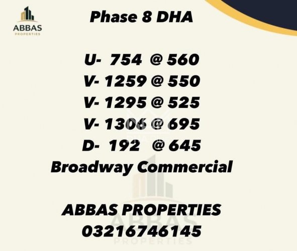Location: Sector T, DHA Phase 8, Lahore