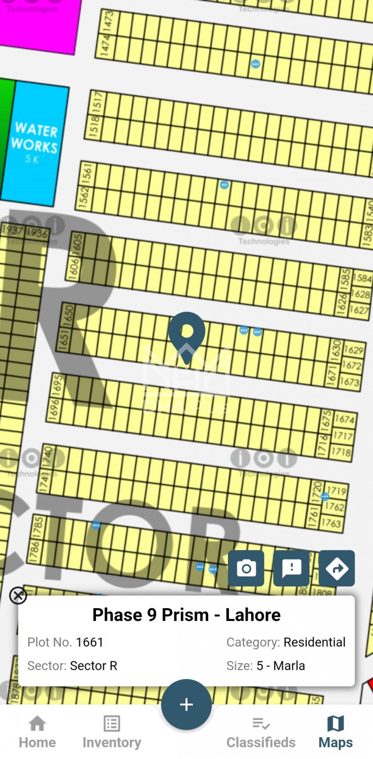9PRISM R 1661@100 lac direct owner complete file available Summary: Location: Sector R, Phase 9 Prism, Lahore Size: 5 Marla Purpose: For Sale Category: Plot Price: PKR: 100 Lakh