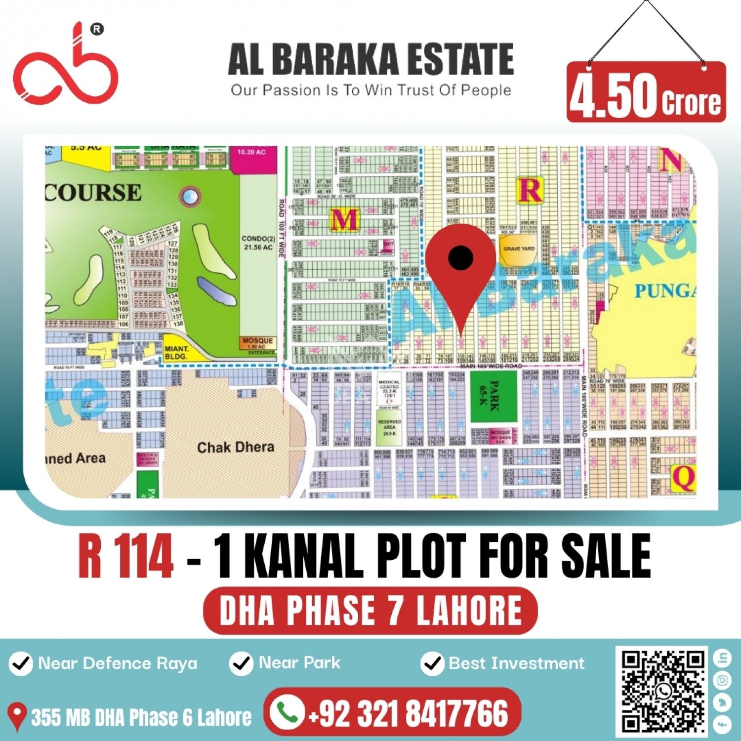 R-114 -- 1 Kanal Prime Location Plot For Sale In DHA Phase 7 Lahore