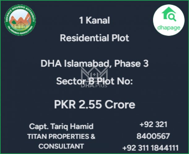 1 Kanal Plot for sale in Sector B, Phase 3, Islamabad - (ID-11287)
