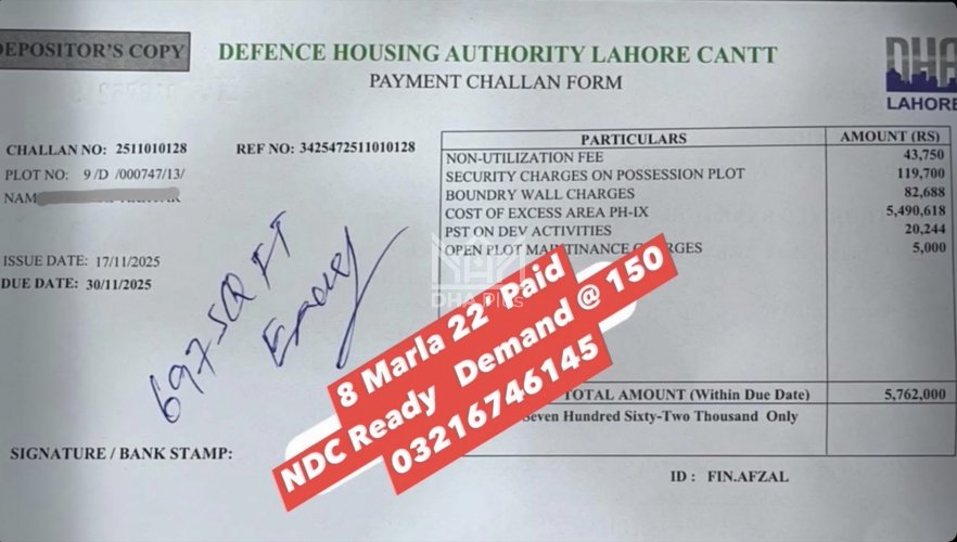 11 Marla Plot for sale in Sector D, Phase 9 Town, Lahore - (ID-19309)