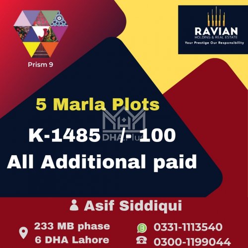 5 Marla Plot for sale in Sector K, Phase 9 Prism, Lahore - (ID-1577)