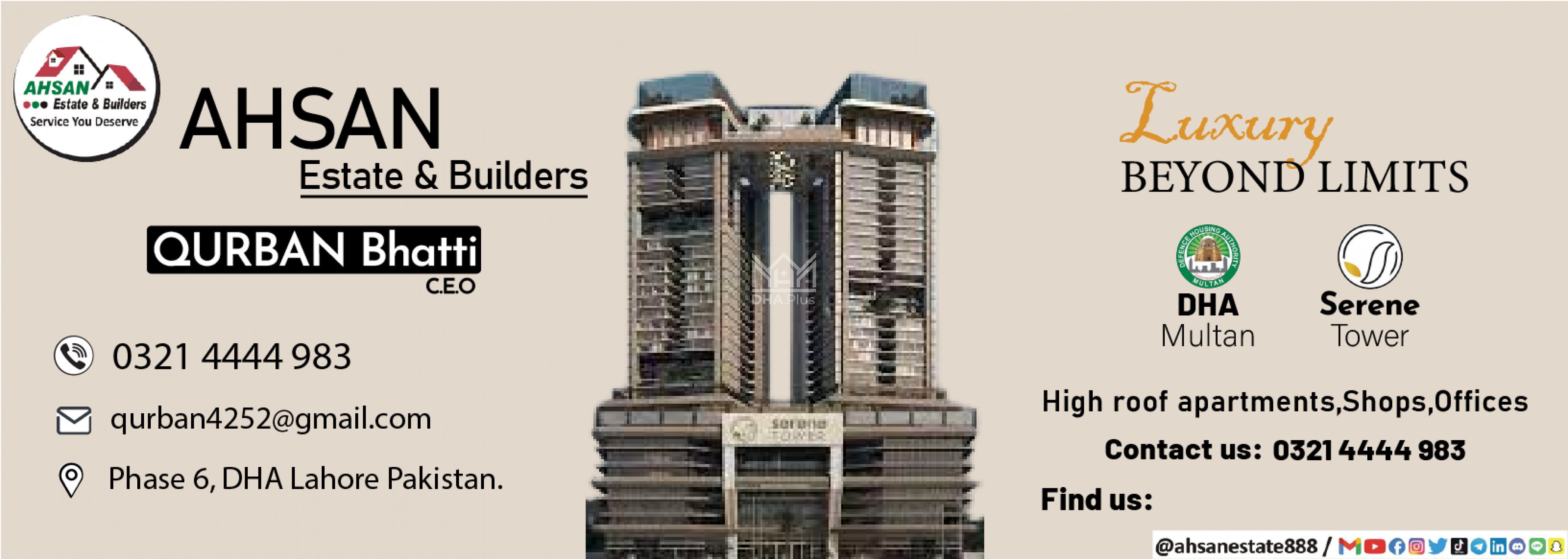 Studio ,One Bed ,2Bed and 3bed apartment Available for sale at DHA Multan Main 350ft Boulevard State of the Art Building At Very Flexiable 4 year Payment plan With DHA Intimiton Letter