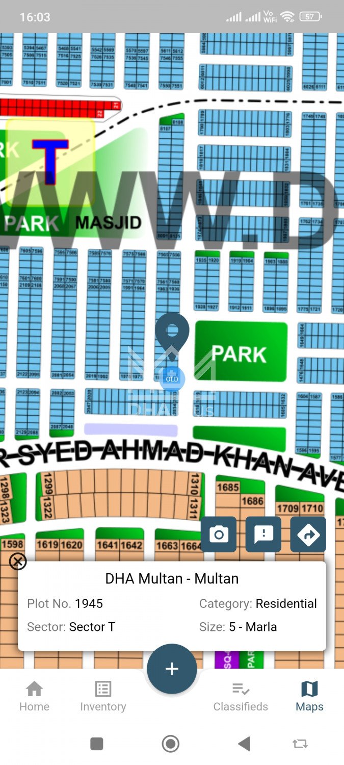 DHA Multan T 1945 @55 Lac Facing Park Biana Summary: Location: Sector T, DHA Multan, Multan Size: 5 Marla Purpose: For Sale Category: Plot Price: PKR: 55 Lakh