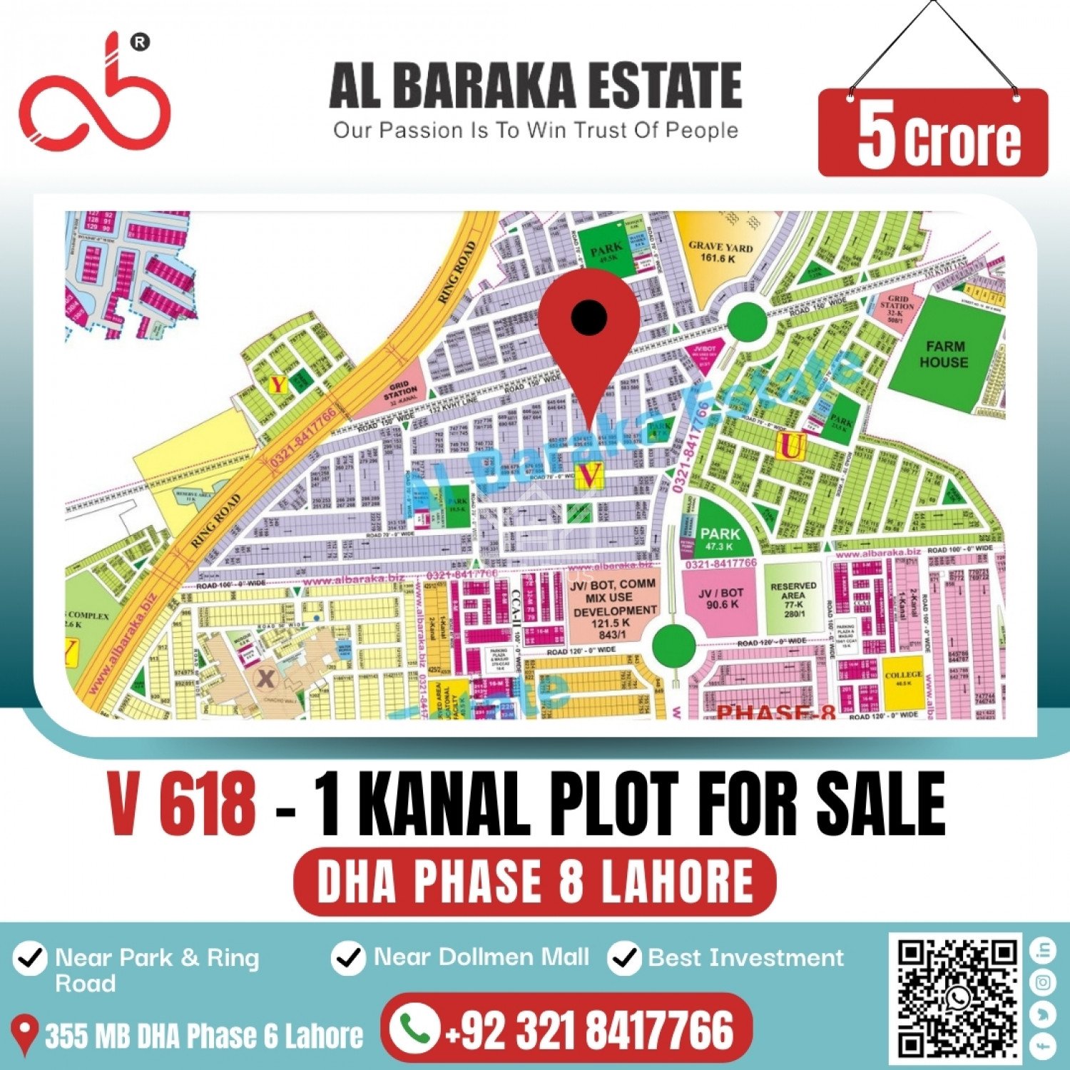 V 618 -- 1 Kanal Plot For Sale In DHA Phase 8 Lahore