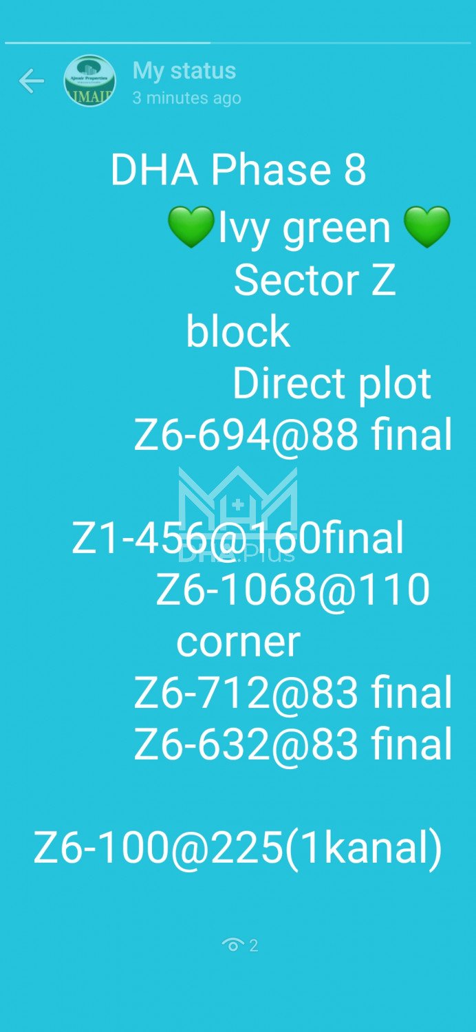 Ajmair properties builder's Dawood Diyal 03267974877 Summary: Location: Sector Z-6, Phase 8 Ivy Green, Lahore Size: 5 Marla Purpose: For Sale Category: Plot Price: PKR: 88 Lakh