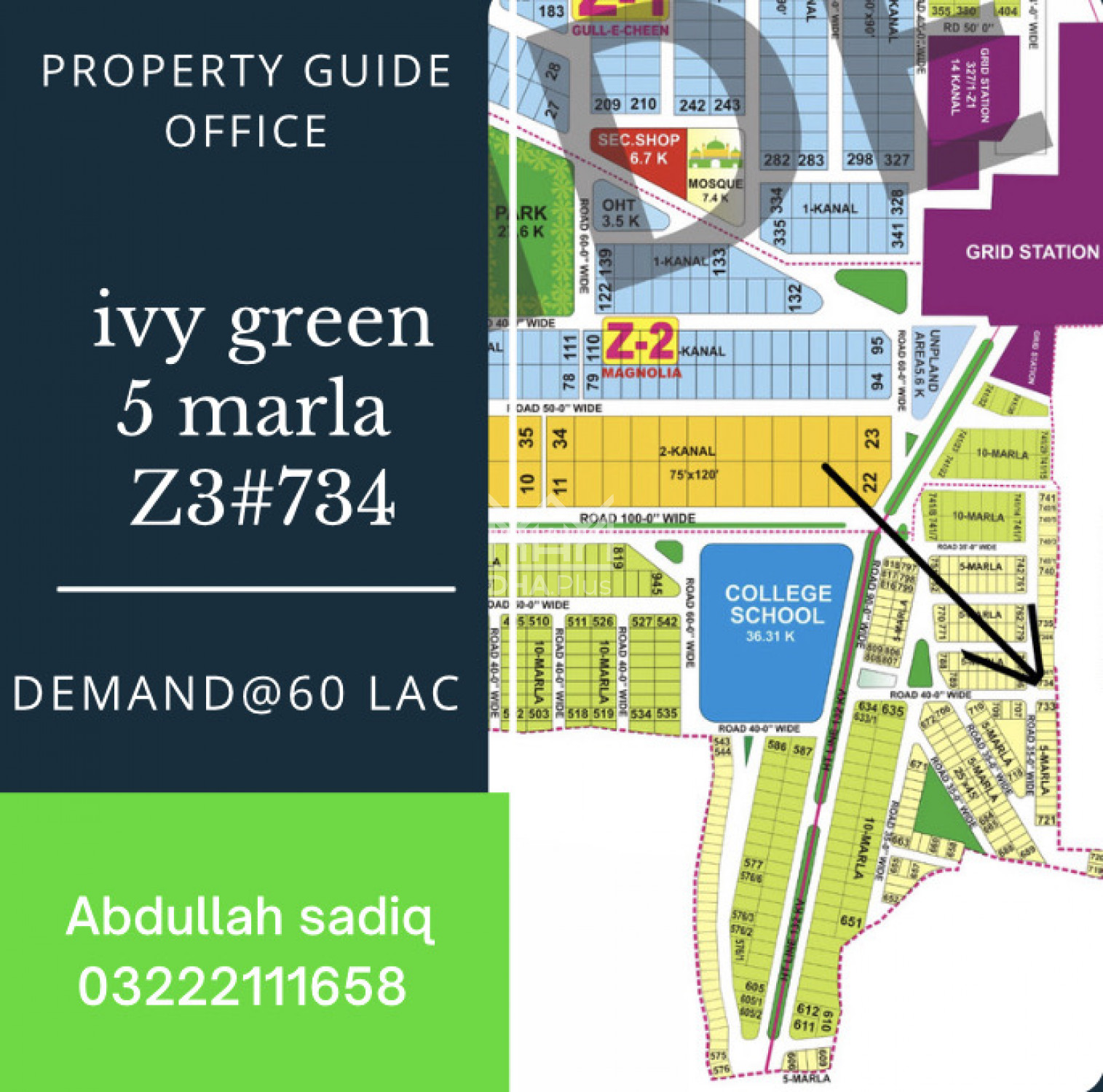 Property Guide 5 marla corner plot for sale for more info contact us Abdullah 03222111658 Summary: Location: Sector Z-3, Phase 8 Ivy Green, Lahore Size: 5 Marla Purpose: For Sale Category: Plot Price: On Call